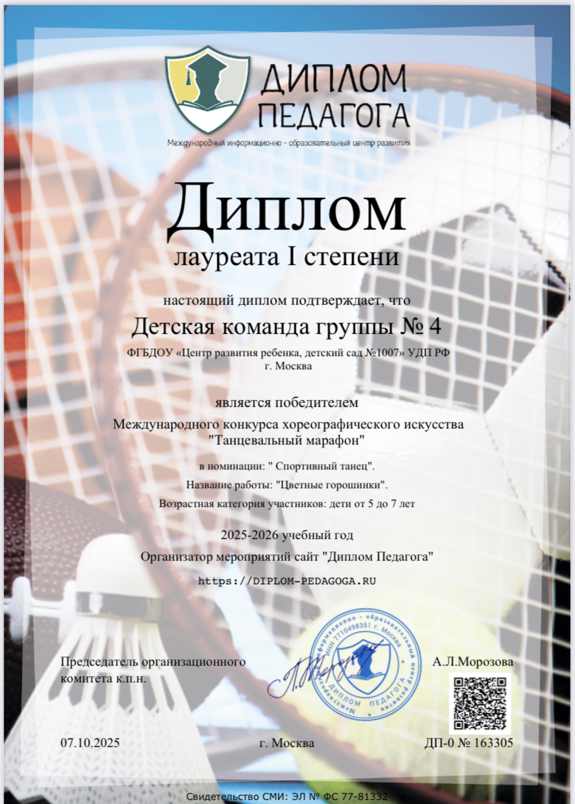 Международный Танцевальный конкурс хореографического искусства «Танцевальный марафон» Номинация «»Спортивный танец»